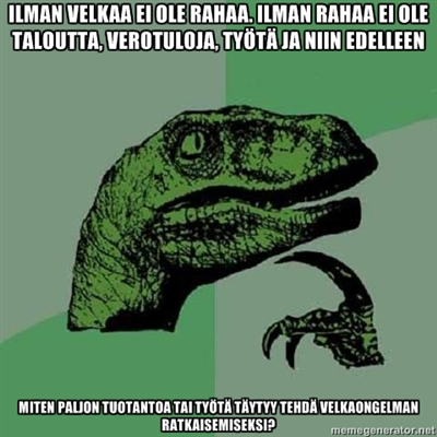 Niin,nyt näkyi Hesarissa olleen että valtion pitää ottaa velkaa LISÄÄ 1320 € jokaista suomalaista kohden..
