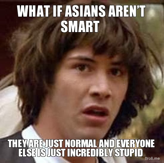Ei se äärioikeistolaista minusta tee, että kerron tieteellisen faktan. Ja etkö sä tyhmä näe, että tuo tutkimushan kertoo kauko-idän asukkaiden olevan se älykkäin joukko maailmassa, ei pärjää valkonaamat ollenkaan.